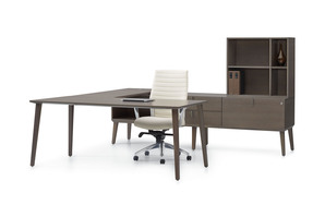The Corby collection of wood veneer and laminate desks, tables and storage elements features new century modern detailing available in twenty finishes with four different species of premium, architectural grade wood veneer and solid wood edges on all principle surfaces. The tapered legs are constructed of matching wood solids with concealed metal connections.