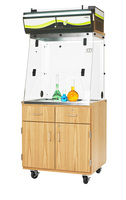 A versatile fume hood that can be used in multiple classrooms. This ductless fume hood has an all-inclusive filter that handles liquids, gases and solid chemicals. This unit is so flexible, it does not require ducting (saves energy) and plugs into an ordinary outlet. Each unit comes with Smart Technology, an exclusive set of tools that is comprised of smart-light communication, chemical sensors, real-time status, and the eGuard app. Smart-light communication is a soft band of light on the unit that lets you know the unit is operating safely. The band of light will slowly pulse to let you know if the airflow is compromised, if there is a fan failure, or there it is time to change your filters. The fume hood part of the unit is enclosed by 5/16" thick acrylic so a teacher can demonstrate while students surround the hood. The metallic parts are anti-corrosion metallic alloy protected by a thermo-hardened anti-acid polymer coating.