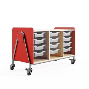 Whiffle Mobile Storage units are constructed of 3⁄4” thick particle board with thermal-fused laminate (TFL) on both sides. The top work surface is made with high pressure laminate on both sides for added strength. Constructed with matching 2mm PVC edge banding on side panels and top worksurface, and 1mm PVC edge banding on remaining parts.